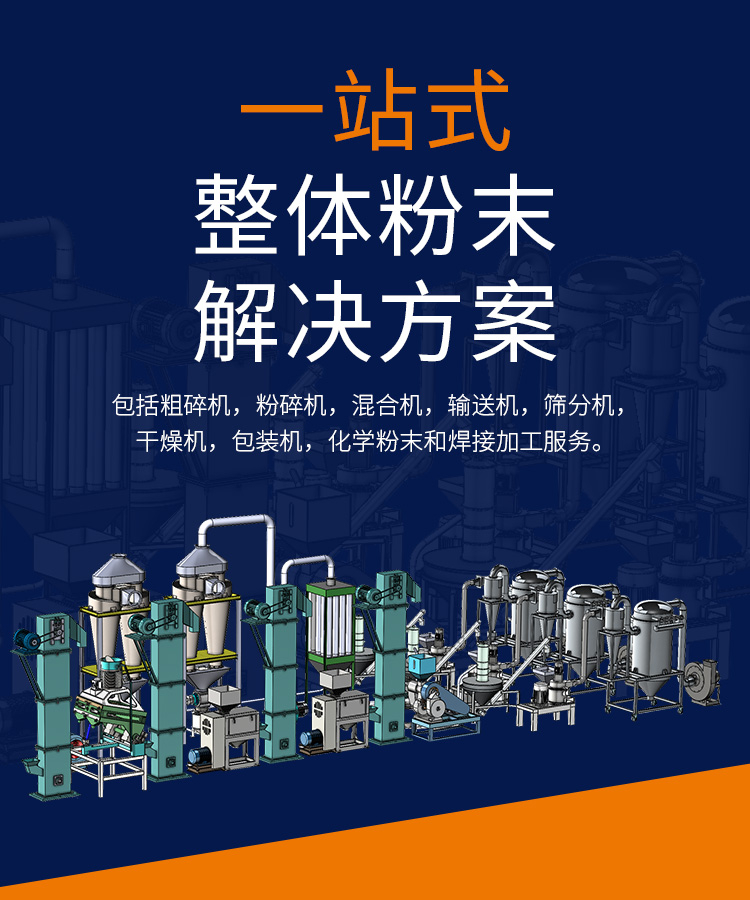 我們提供專業的粉末加工整體解決方案(包括研磨機,研磨機,粉碎機,混合機,輸送機,篩分機,干燥機,包裝機),化學粉末和焊接加工服務。截至2021年,我們的產品已出口到全球70多個國家。